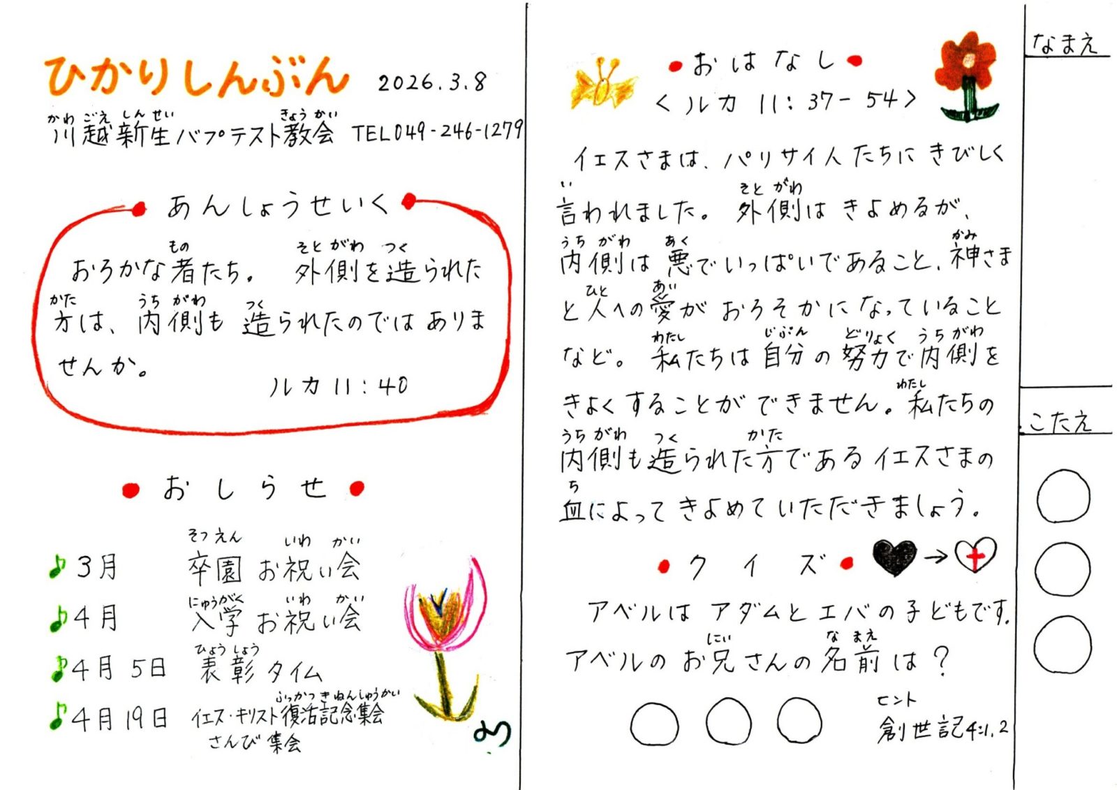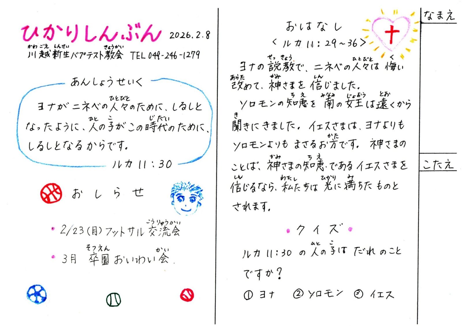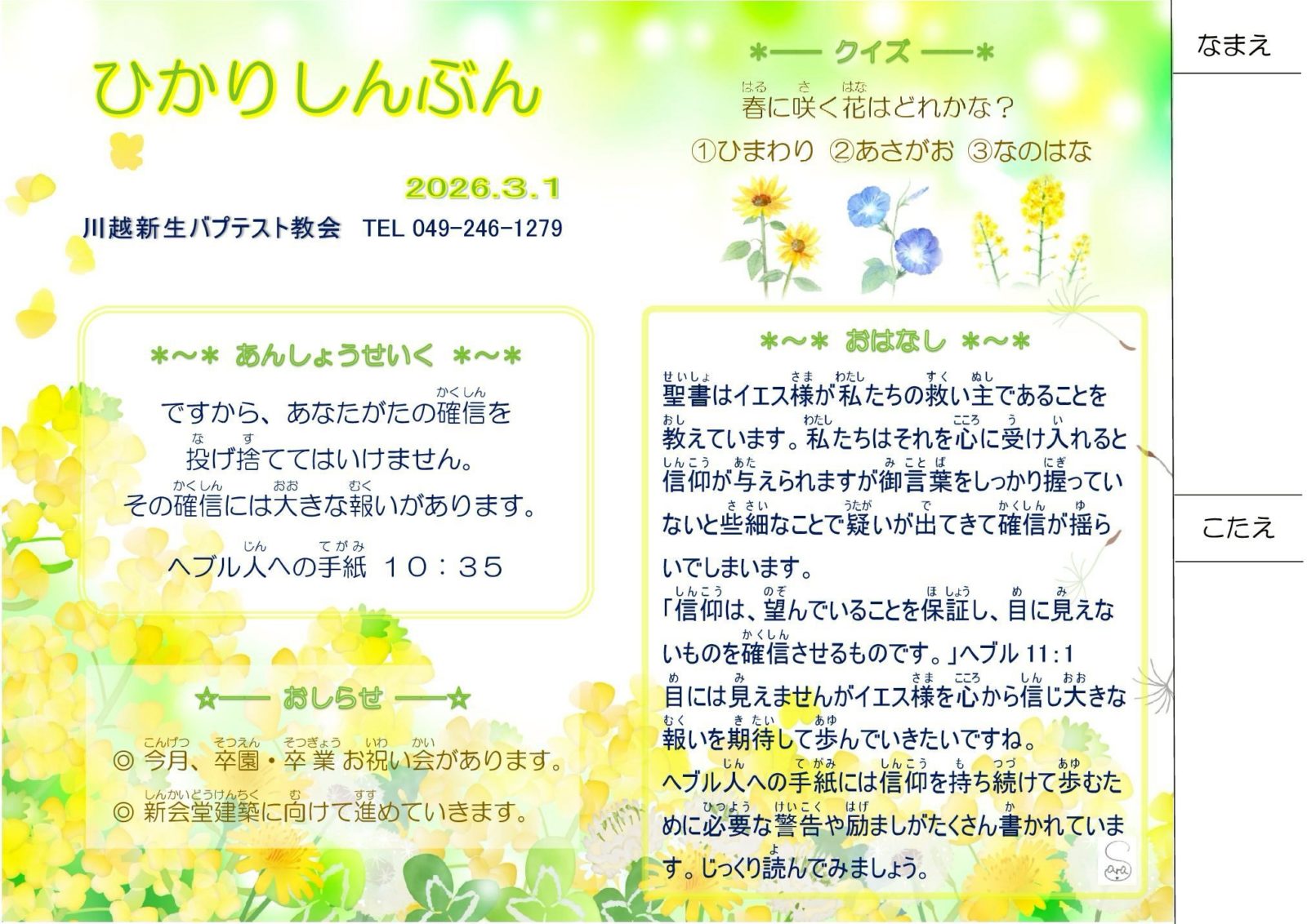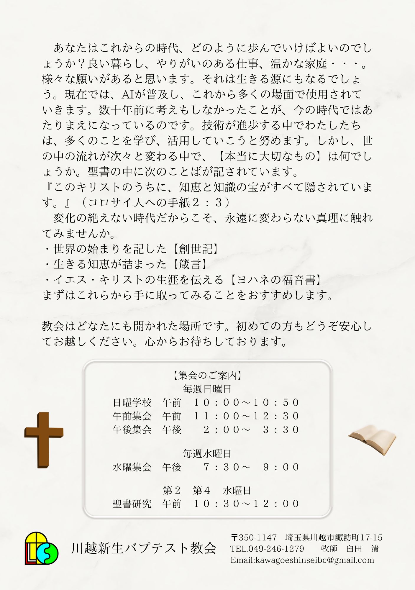 川越新生バプテスト教会のホームページをご覧いただきありがとうございます。
